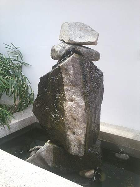 Fountains are made from natural rock. Fountain styles include larger whole natural rocks and smaller rock-cores. Fountains range in size from table-top for porch, room, or deck to large garden fountains installed onsite.